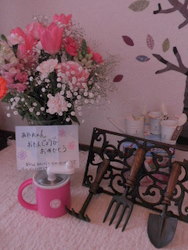 × [PR]上記の広告は3ヶ月以上新規記事投稿のないブログに表示されています。新しい記事を書く事で広告が消えます。 こんばんは♪ 載せたいことはいっぱいあるのに、 主婦は時間がないわ~ 困っちゃう。笑 これに加えて子育てしてる人に本当に尊敬するなー そしてブログなんかも更新しちゃって、どんだけすごいの~!! さてさて、 今日は、お気に入りのクッションを紹介します! タイトルらしく、Girlyなブログにしていかなければ! まずコレ~ デンマーク生まれの 『Green Gate』 ![]() ストライプとお花柄のクッション! 発見した途端、鼻血が出そうになった一品。笑 TIMELESS COMFORTで買いました♪ ちょっとお高いけど、誕生日プレゼントも選んでなかったから、 買ってもらっちゃいました ![]() 先日OPENした福岡パルコの中にも入るそうで!嬉し~ お店の人も言ってたけど、キャスみたいよね。。 こちらのオンラインショップから商品が見れます。 ↓ http://www.timelesscomfort.jp/site/index.html そして、こっちはインドで作られたクッション! あれ?遠くてぼけてて、よく見えないね。。(><) そんなあなたに。。。ふふふ。 刺繍のアップだよ~♪ クッションの色も刺繍糸の色も、私好みで一目惚れ 二つかかえて満員電車にゆられて帰ってきました。 クッションをソファーにたくさん並べるの 憧れだったんだぁ~ ![]() ![]() フランス人みたいにね♪ そして、次は久々にベランダのこと。 うちのベランダに仲間入りした方達を 紹介します! コレコレ↓ 緑のベンチ!どうかしら? レモンの木と、右の奥にちょっぴり見えるカラフルなビンも 新入りです。 そしてそこに、お客様。。 常連のあの方です。。。 はい。ママさんです。 夕暮れ時で、ちょっぴり暗くて寒かったけど、 二人でコーヒータイム ![]() 久々のカフェオープンです! 冬の間、放置してきたので、 春はお花でいっぱいにしたいと思ったのに、、もう春。 アレ?もっとかわいくしたいなぁ~ 義理のオネエに誕生日プレゼントにもらった 『ストラップとピアス』を撮ってみました。かわいい ![]() はー今日の目標。ブログアップが終わったー。 もう1時だー 明日も頑張りましょう。おやすみなさい★ PR 今度は 『 バースデイ編 』です。 2月11日は友達の”しのこ”の結婚式でした ![]() 大好きなお父さんと入場! もうこの時からウルウルな私 ![]() 桜いっぱいのチャペルでの挙式 ![]() あいにくの、雨模様のこの日。 外でのフラワーシャワーは無理だろうな。。。と思っていたら、 雨がやみ、外に出られる瞬間が~ ![]() 後で聞いたところによると、 ホテルのスタッフの皆さんが、外に出られるようにと、 床を全部拭きあげてくれたそうなんです 感動。幸せそうなしのこ。。 ![]() 式が終わり、会場に入ると、 黒とピンクで、すっごく素敵な会場 ![]() 全てが豪華 ![]() サプライズというのは、 『しのこの家族のビデオレターを、当日プレゼント!』 という企画! 何か驚かせられないかなーと思って、 家族大好きなしのこなら絶対喜ぶはず! と思って、考え付いたビデオレター。 1月のある日、しのこの実家へ、片道1時間半?かけて はるばる(怒られる? )行ってきました。事前に連絡して 結婚しているお兄さん夫婦、お姉さん夫婦と甥っ子クン達、弟クン達にも 集合をかけて、 総勢9名に集まってもらいました ![]() お父さんと、お母さんは大きな紙にカンペを用意していて、 私がビデオ撮影する間、 一緒についてきてくれたうちの旦那クンが、カンペを持つ係。 そこで、普通のビデオレターと違うのが、 お父さんが話し終わった後、 『 ではここで一曲! 』 と言って、 ラジカセを準備していて歌い出したこと。 それも、カラオケではなく、歌手の人の声入り! 会場大爆笑でした ![]() その歌っているお父さんの隣に、 孫を抱いて、お尻フリフリ現れたお母さん ![]() さすがしのこは、この二人の子供だわ~と思いました ![]() 弟クンは弟クンで、 『姉ちゃん!誕生日おめでとう!! 』 とか、マジボケしてたし! そのまま使わせてもらいました ![]() で、その弟クンの後ろを通行人の振りをして、 家族がみんなピースサインなどしながら 通り過ぎていくという。。 放っておいても、勝手に盛り上げておもしろいことをしてくれる お笑い一家でした ![]() 本当は、泣くようなビデオレターになるのかなーと思いきや、 この家族らしい、大爆笑ビデオをお届けすることができました。 新婦本人も、涙流しながら、笑ってました。 あーよかった ![]() お父さんとは、ビデオ後に、 『 大成功! 』と満面の笑みで、握手しました ![]() ビックリすることに、 それぞれの友達が色々なサプライズを準備していて、 サプライズだらけの今まで見たこともないような結婚式だったんです!! 私は、 もう一つのサプライズにも参加していて・・ 実は、元々このホテルは、私としのこが出会った場所なんです。 二人で一緒に働いていたんだけど、私が先に退職。 残ったしのこは、10年余り、このホテルでウェディングプランナーとして 活躍していたんです
