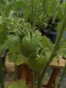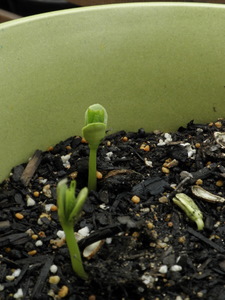次の日の朝。 雨が降りそうな微妙な天気だったけれど、 喜ばせたくって、ベランダガーデン強行!