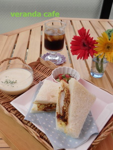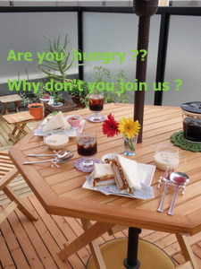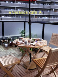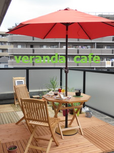 ふふふ。 すっかりお気に入りのベランダカフェ♪ 今日も昼間は晴れてたので Openしちゃいましたよ~ (^m^)プププ 今日は残念ながら予約のお客様いなかったので、 (当たりまえー) スタッフ二人でランチです。 買ったパラソルは・・ ジャジャン♪ こちらでーす