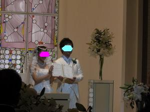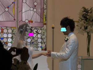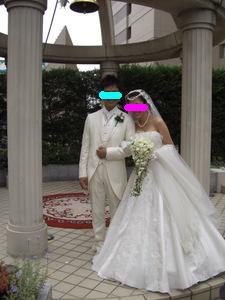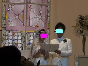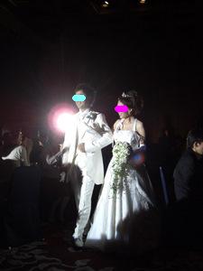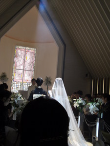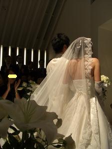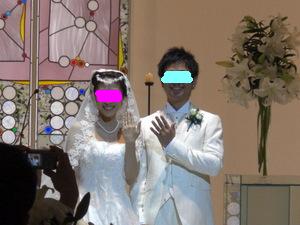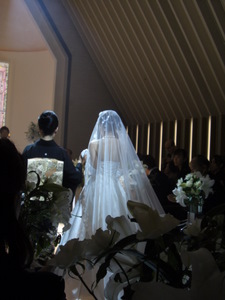 11月3日(月) 結婚式当日。 いよいよこの日がやってきました 前の日までバタバタしてたので、ママさんにお礼も言えず・・ 当日もささっと軽くご飯を食べて、 二次会に着ていく服を着て、 会場に向かいました。 心境は、本当に今日なんだー っていう感じ。 お天気は曇りでした。 タクシーに乗って、ホテルの美容室へ。 個室に通されて、 ベテランメイクさんが 手早くメイクをしてくれています。 私のための個室が用意されて フルメイクに、お着替え。 「あー幸せだな~」って 思いました。 この先きっともう二度ないお姫様のような待遇なんだもん。笑 お化粧が進むにつれ だんだん変身していく私。 鏡の横には、メイクリハーサルの時に取った 私の写真がでーんと貼ってあって それはそれは 変な顔でした。 本当に!笑 できあがりは、本当に素晴らしいものになりました~ 憧れていた「マリアベール」と、 どうしても付けたかった、ヘッドアクセサリーを装着。 花冠みたいなアクセサリーです。 そして、そして・・・ とうとうチャペルへ。 チャペルでの人前式スタートです。 お母さんと入場 リハーサル通りに、着物のお母さんの歩幅に合わせて ゆっくり、ゆっくり前進。 そして、新郎にバトンタッチ。 ・・のはずが なかなかはけない母上に 小声で「お母さん。お母さん。こちらへ」 と言われてました。 さすが天然母さん♪式でもやってくれます。笑 チャペル式ではないので、通常なかなか最初から お客さんの方を向くことはないんだけど、 人前式のため、くるっと回って 皆さんの方を向いて 『誓約書』を読み上げました。 新郎 : 『前から約束していた沖縄に連れて行きます。』 (毎年言ってます。笑) 新婦 : 『ホームパーティーができるぐらい料理を練習します。』 (あんまり守れてません。笑) そしてそれぞれのお姉ちゃんに承認者としてサインをもらって、 みなさんにお披露目。 そして・・ 指輪の交換。 再び記者会見のようにお披露目。 そして、誓いのキスをしまして・・。 (ここはご想像にお任せします。笑) 退場! 無事に式が終わって、ほっとしてさっさと退場する私達を みんな何も言わずに送りだす中、 私の高校の友達のMちゃんだけは、 『早い!早い!』と言って 写真を撮るために私たちを威圧して立ち止まらせました。笑 さすがMちゃん。うけるわー チャペルの外に出て待ち受けるみんなの中を通り抜け フラワーシャワー 中学時代の友達が鐘を鳴らして待っていてくれました。 ゴーンゴーン 私達も鐘をならして・・