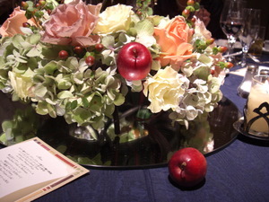 しのこのお皿の上だけ、いたずらで でーーんって、でっかいリンゴちゃんを 置いてもらってました。 当日控え室にみきちゃんがやってきて、 りんごちゃんに、メッセージを書きました♪