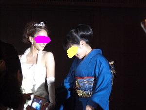 これは、叔母さんがぬいぐるみ買ってドレスを作ってくれました!! おばちゃんありがとう!! そして、このリサ達の隣で受付をしてくれた 『 Wヒロちゃん!!ありがとう!! 』 式から披露宴は、 ベールをとって・・ホルターネックをつけて・・ アクセサリーを変えて・・・髪型を変えて・・(前髪を編みこみました♪) 衣装自体は変えなくても、 全然雰囲気が変わりました~ では、では 大好きなSWEET BOXの『READ MY MIND』 に合わせて 入場で~す